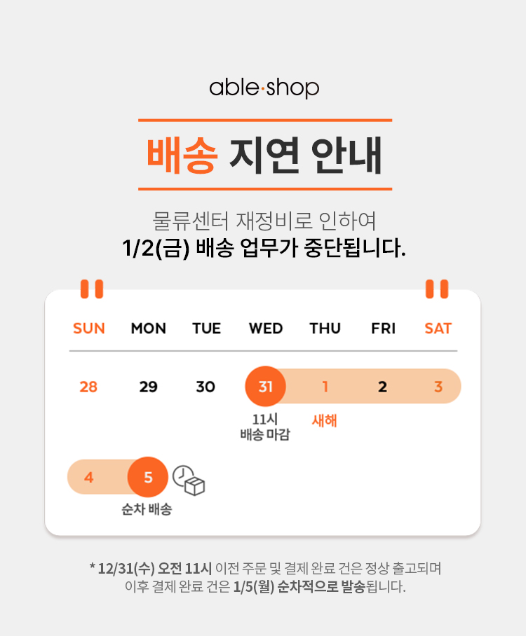■ 12/31(수) 오전 11시 이전 주문 상품 → 정상 출고