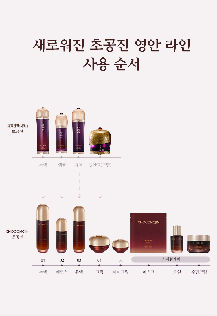 | 전성분 | 카프릴릭/카프릭트라이글리세라이드, 펜타에리스리틸스테아레이트/카프레이트/카프릴레이트/아디페이트, 다이카프릴릴에터, 메도우폼씨오일, 사과씨오일, 동백나무씨오일, 하이드로제네이티드코코넛오일, 칸디다 봄비콜라/글루코오스/메틸레이프씨데이트발효물, 비타민나무오일, 한련초추출물, 참당귀추출물, 산수유열매추출물, 타임추출물, 녹용추출물, 마카다미아씨오일, 인도멀구슬나무잎추출물, 인도멀구슬나무꽃추출물, 해바라기씨오일, 아이비고드열매추출물, 드럼스틱씨오일, 알로에베라꽃추출물, 가지열매추출물, 호호바씨오일, 참산호말추출물, 울금뿌리추출물, 홀리바질잎추출물, 흑삼추출물, 진흙버섯추출물, 하이드롤라이즈드하이알루로닉애씨드, 토코페롤, 정제수, 글리세린, 하이드로제네이티드레시틴, 메틸프로판다이올, 1,2-헥산다이올, 세라마이드엔피, 부틸렌글라이콜, 에틸헥실글리세린, 펜틸렌글라이콜, 소듐스테아로일글루타메이트, 3-O-에틸아스코빅애씨드, 카프릴릴글라이콜, 하이드롤라이즈드엘라스틴, 아세틸헥사펩타이드-8, 폴리글리세릴-10스테아레이트, 세테아릴알코올, 향료, 벤질살리실레이트, 알파-아이소메틸아이오논, 시트로넬올, 제라니올, 리날룰, 리모넨, 하이드록시시트로넬알, 헥실신남알 |