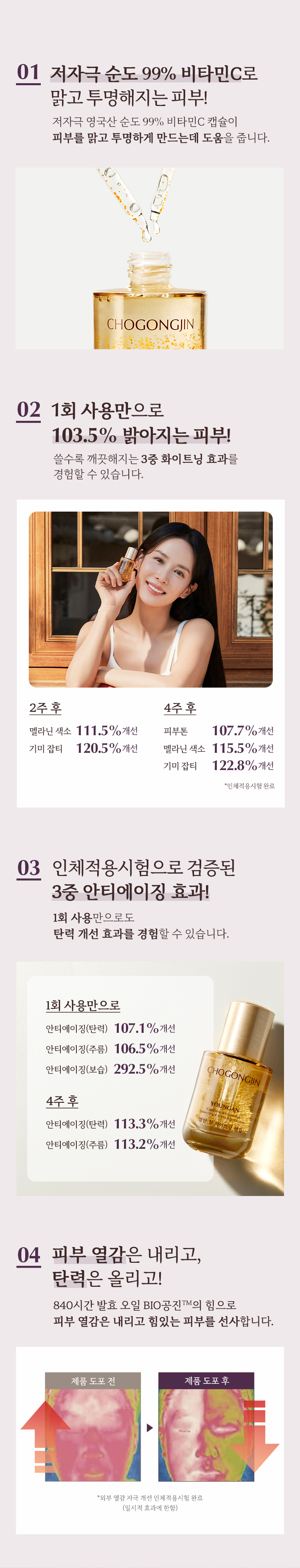 | 식품의약품안전청 심사 필 유무 | 주름개선 & 미백 2중 기능성 화장품 |