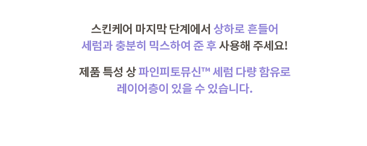 | 사용할 때의 주의사항 | 가. 화장품 사용 시 또는 사용 후 직사광선에 의하여 사용부위가 붉은 반점, 부어오름 또는 가려움증 등의 이상 증상이나 부작용이 있는 경우에는 전문의 등과 상담할 것 나. 상처가 있는 부위 등에는 사용을 자제할 것 다. 보관 및 취급 시 주의사항 1) 어린이의 손이 닿지 않는 곳에 보관할 것 2) 직사광선을 피해서 보관할 것 |
