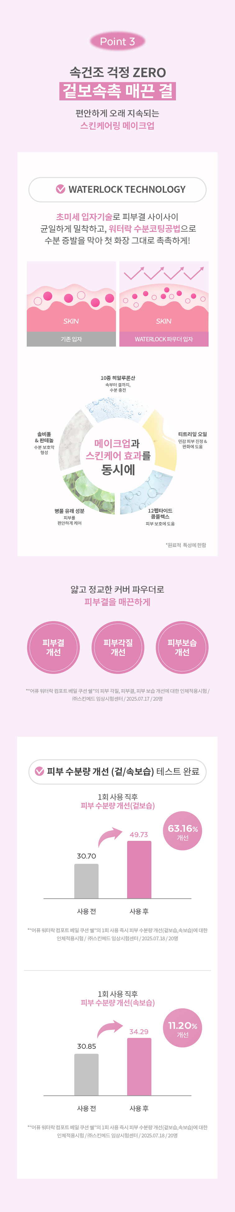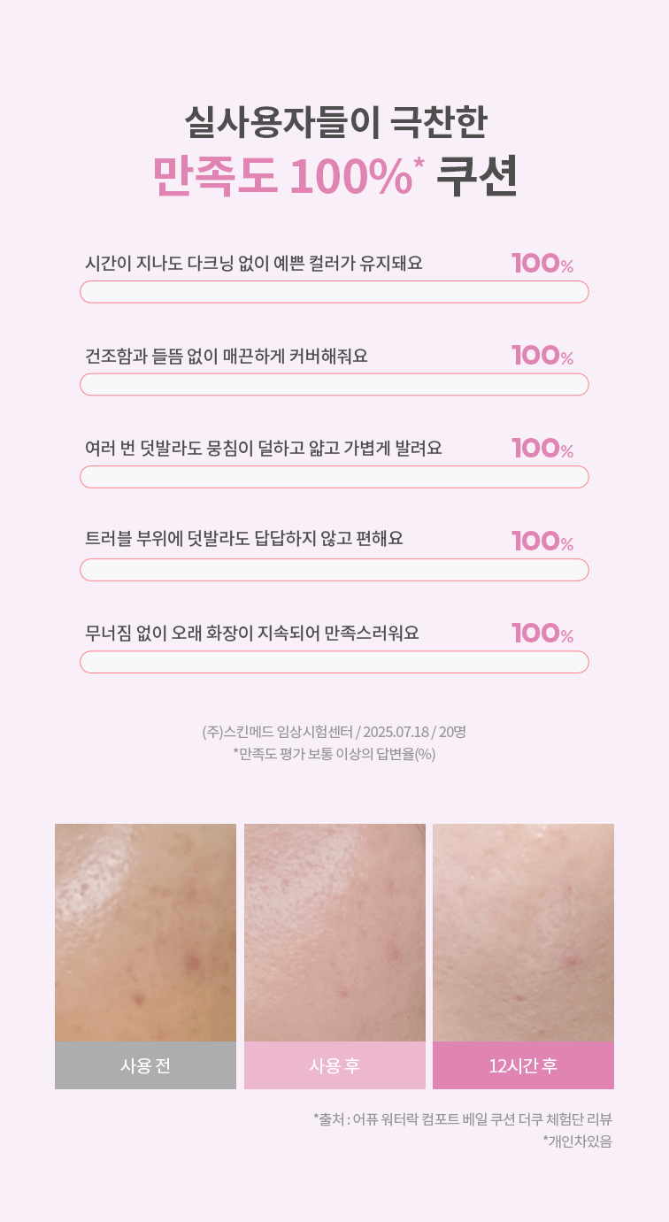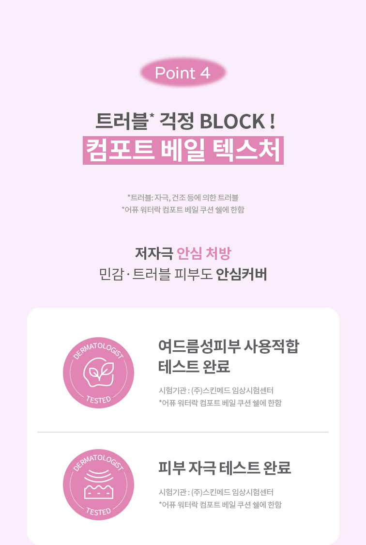| 전성분 | [19호 퓨어] 정제수, 티타늄디옥사이드 (CI 77891), 다이메티콘, 메틸트라이메티콘, 에칠헥실메톡시신나메이트, 프로판다이올, 에칠헥실살리실레이트, 부틸렌글라이콜다이카프릴레이트/다이카프레이트, 폴리메틸실세스퀴옥세인, 다이페닐실록시페닐트라이메티콘, 나이아신아마이드, 세틸피이지/피피지-10/1다이메티콘, 1,2-헥산다이올, 합성플루오르플로고파이트, 아이소도데케인, 바륨설페이트, 비닐다이메티콘/메티콘실세스퀴옥세인크로스폴리머, 라우릴피이지-10트리스(트라이메틸실록시)실릴에틸다이메티콘, 다이스테아다이모늄헥토라이트, 실리카, 마그네슘설페이트, 황색산화철 (CI 77492), 아크릴레이트/스테아릴아크릴레이트/다이메티콘메타크릴레이트코폴리머, 솔비탄아이소스테아레이트, 마이카 (CI 77019), 다이펜타에리스리틸펜타아이소스테아레이트, 스테아릭애씨드, 알루미나, 글리세릴카프릴레이트, 옥틸도데칸올, 트라이에톡시카프릴릴실레인, 알루미늄하이드록사이드, 실리카다이메틸실릴레이트, 적색산화철 (CI 77491), 향료, 아데노신, 트라이소듐에틸렌다이아민다이석시네이트, 폴리글리세릴-4아이소스테아레이트, 흑색산화철 (CI 77499), 마그네슘미리스테이트, 아이소프로필티타늄트라이아이소스테아레이트, 다이프로필렌글라이콜, 부틸렌글라이콜, 판테놀, 펜타에리스리틸테트라-다이-t-부틸하이드록시하이드로신나메이트, 솔비톨, 토코페롤, 마데카식애씨드, 아시아틱애씨드, 아시아티코사이드, 소듐하이알루로네이트, 다이메틸실란올하이알루로네이트, 하이드롤라이즈드하이알루로닉애씨드, 하이드롤라이즈드소듐하이알루로네이트, 하이알루로닉애씨드, 포타슘하이알루로네이트, 하이드록시프로필트라이모늄하이알루로네이트, 소듐하이알루로네이트크로스폴리머, 에틸헥실글리세린, 소듐하이알루로네이트다이메틸실란올, 아세틸헥사펩타이드-8, 소듐아세틸레이티드하이알루로네이트, 아스코빅애씨드폴리펩타이드, 티트리잎오일, 아세틸옥타펩타이드-3, 아세틸테트라펩타이드-2, 아세틸테트라펩타이드-3, 아세틸테트라펩타이드-5, 아세틸테트라펩타이드-9, 카르노신, 카퍼트라이펩타이드-1, 노나펩타이드-1, 팔미토일펜타펩타이드-4, 팔미토일트라이펩타이드-1, 팔미토일트라이펩타이드-5 [21호 쉘] 정제수, 티타늄디옥사이드 (CI 77891), 다이메티콘, 메틸트라이메티콘, 에칠헥실메톡시신나메이트, 프로판다이올, 에칠헥실살리실레이트, 부틸렌글라이콜다이카프릴레이트/다이카프레이트, 폴리메틸실세스퀴옥세인, 다이페닐실록시페닐트라이메티콘, 나이아신아마이드, 세틸피이지/피피지-10/1다이메티콘, 1,2-헥산다이올, 아이소도데케인, 합성플루오르플로고파이트, 바륨설페이트, 비닐다이메티콘/메티콘실세스퀴옥세인크로스폴리머, 라우릴피이지-10트리스(트라이메틸실록시)실릴에틸다이메티콘, 다이스테아다이모늄헥토라이트, 실리카, 마그네슘설페이트, 황색산화철 (CI 77492), 아크릴레이트/스테아릴아크릴레이트/다이메티콘메타크릴레이트코폴리머, 솔비탄아이소스테아레이트, 마이카 (CI 77019), 다이펜타에리스리틸펜타아이소스테아레이트, 스테아릭애씨드, 알루미나, 옥틸도데칸올, 글리세릴카프릴레이트, 트라이에톡시카프릴릴실레인, 알루미늄하이드록사이드, 적색산화철 (CI 77491), 실리카다이메틸실릴레이트, 향료, 아데노신, 폴리글리세릴-4아이소스테아레이트, 트라이소듐에틸렌다이아민다이석시네이트, 흑색산화철 (CI 77499), 아이소프로필티타늄트라이아이소스테아레이트, 마그네슘미리스테이트, 다이프로필렌글라이콜, 부틸렌글라이콜, 판테놀, 펜타에리스리틸테트라-다이-t-부틸하이드록시하이드로신나메이트, 솔비톨, 토코페롤, 마데카식애씨드, 아시아틱애씨드, 아시아티코사이드, 소듐하이알루로네이트, 다이메틸실란올하이알루로네이트, 하이드롤라이즈드하이알루로닉애씨드, 하이드롤라이즈드소듐하이알루로네이트, 하이알루로닉애씨드, 포타슘하이알루로네이트, 하이드록시프로필트라이모늄하이알루로네이트, 소듐하이알루로네이트크로스폴리머, 에틸헥실글리세린, 소듐하이알루로네이트다이메틸실란올, 아세틸헥사펩타이드-8, 소듐아세틸레이티드하이알루로네이트, 아스코빅애씨드폴리펩타이드, 티트리잎오일, 아세틸옥타펩타이드-3, 아세틸테트라펩타이드-2, 아세틸테트라펩타이드-3, 아세틸테트라펩타이드-5, 아세틸테트라펩타이드-9, 카르노신, 카퍼트라이펩타이드-1, 노나펩타이드-1, 팔미토일펜타펩타이드-4, 팔미토일트라이펩타이드-1, 팔미토일트라이펩타이드-5 [23호 라떼] 정제수, 티타늄디옥사이드 (CI 77891), 메틸트라이메티콘, 에칠헥실메톡시신나메이트, 다이메티콘, 프로판다이올, 에칠헥실살리실레이트, 부틸렌글라이콜다이카프릴레이트/다이카프레이트, 폴리메틸실세스퀴옥세인, 다이페닐실록시페닐트라이메티콘, 나이아신아마이드, 세틸피이지/피피지-10/1다이메티콘, 아이소도데케인, 1,2-헥산다이올, 합성플루오르플로고파이트, 바륨설페이트, 비닐다이메티콘/메티콘실세스퀴옥세인크로스폴리머, 라우릴피이지-10트리스(
